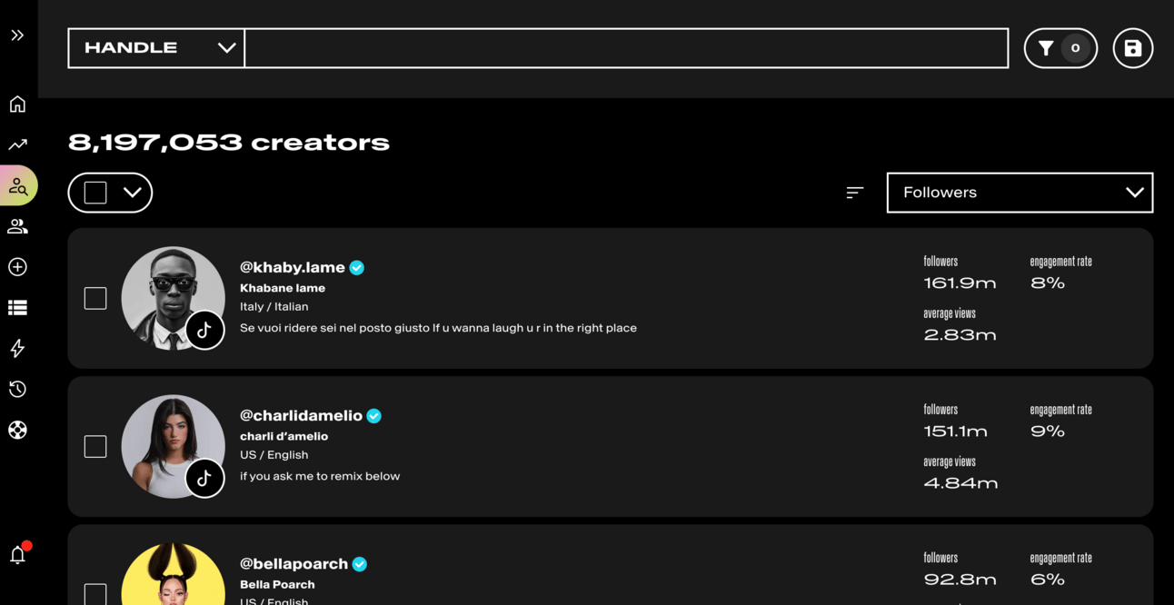 We’ve screened our database of over 500million tiktok accounts, to serve you an ever-expanding list of the strongest creators 💪
