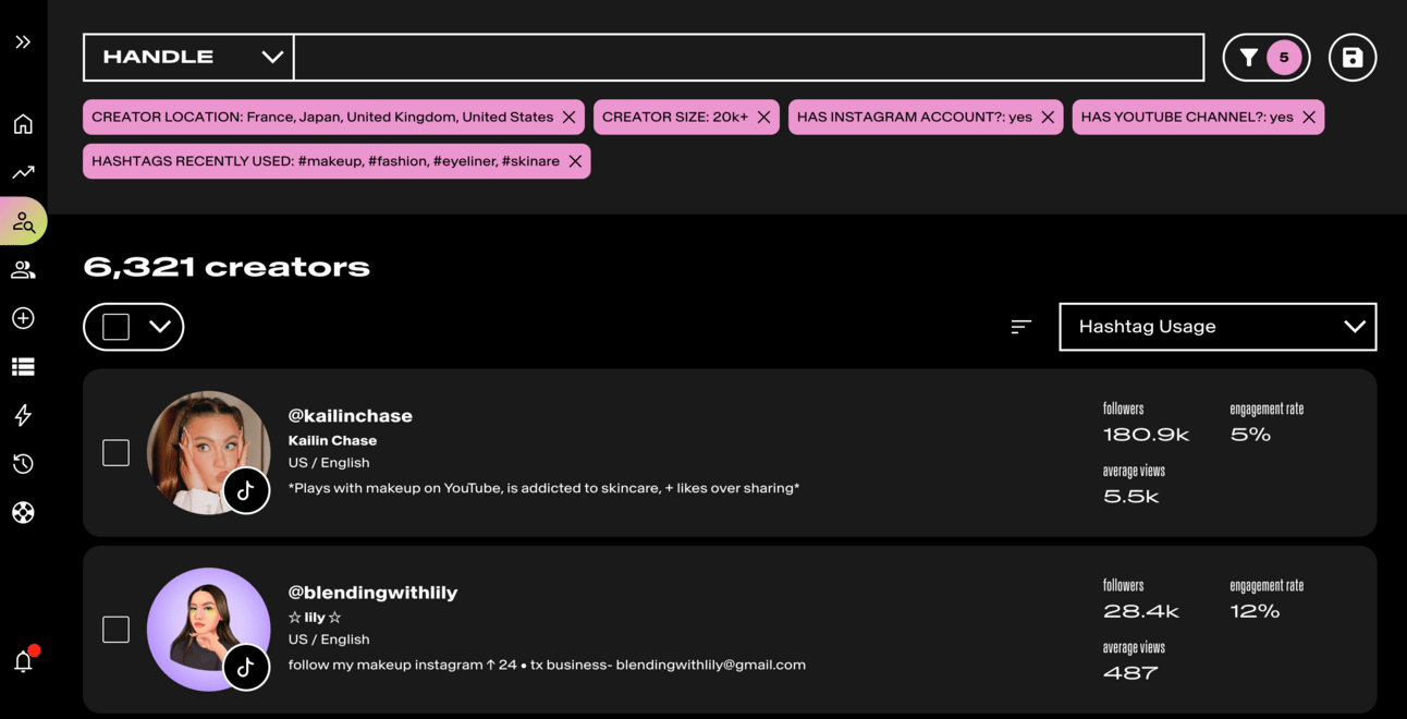 Finding powerful creators to work with can be an incredibly tough manual process, and even an expensive one! Knowing first-hand the problems existing in creator search, our product development was guided by our creator partnerships team to build an industry leading discovery tool. 🥇