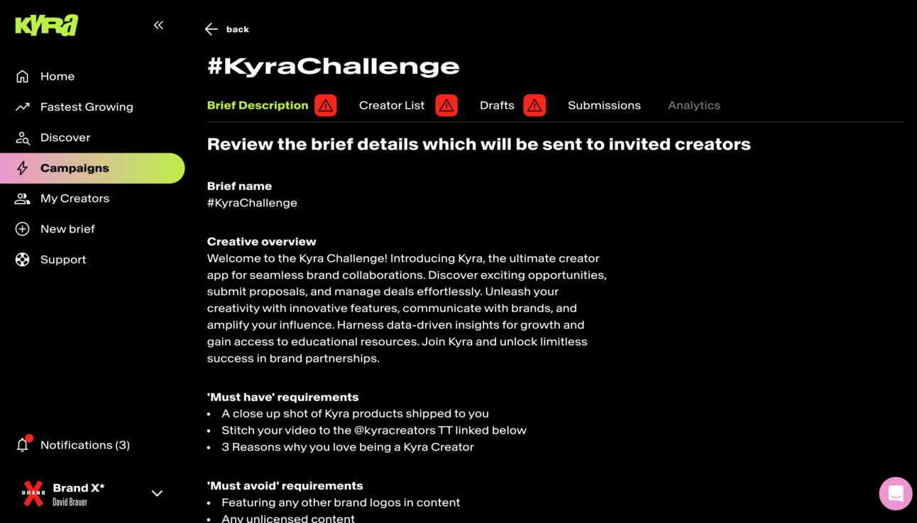 Clicking into a Brief will show you all the details about the brief, from brief description, to creator list, drafts, submissions and analytics. 🤓