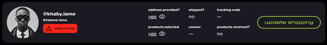 And finally, a products received status which the creator updates once they have the products in hand ✅